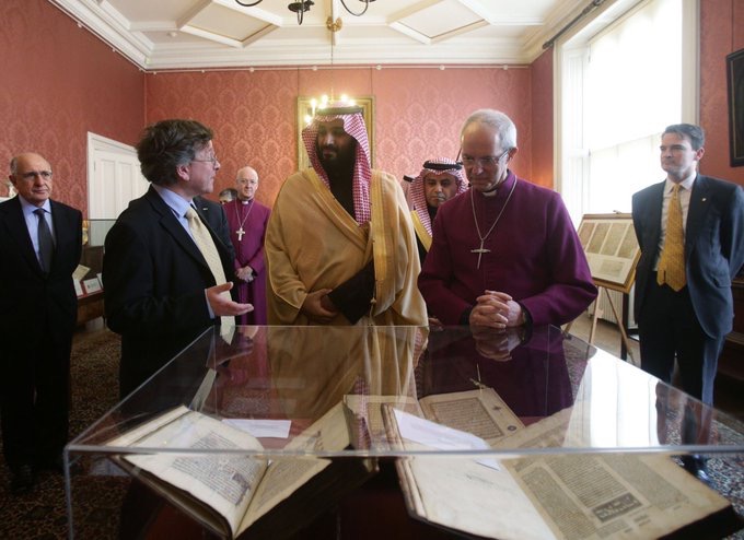 كما اطلع الأمير محمد بن سلمان على مجموعة من النصوص الدينية في المكتبة الخاصة بقصر لامبيث.