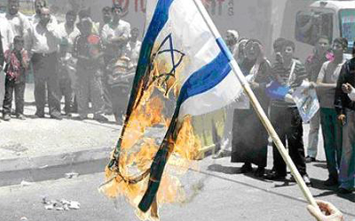 وقال شهود عيان إن الشرطة أطلقت النار في الهواء ثم أطلقت قنابل الغاز المسيل للدموع على المتظاهرين بعد أن حاولوا تفكيك حواجز أقيمت أمام المبنى قاصدين اقتحامه لإنزال العلم الإسرائيلي.