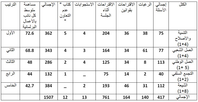 *أعضاء «العمل الوطني» ساهموا بـ 286 عملاً برلمانيا واحتلوا المركز الأول في توجيه الأسئلة