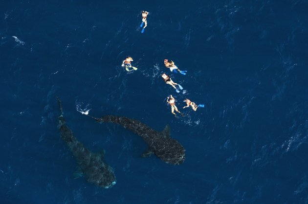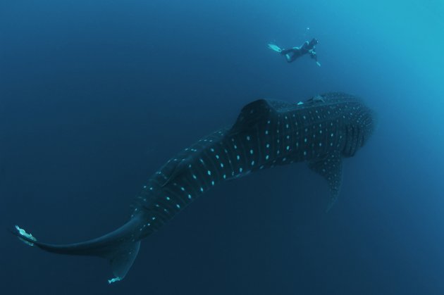 يتغذى حوت القرش على العوالق، لكن فمه الكبير كان على وشك ابتلاع غواص دفعه فضوله للاقتراب من حيوان يفوقه أضعافا في الحجم للحصول على هذه الصور.