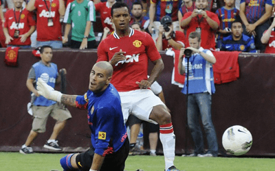 ضمن مبارياتهم الودية الاستعدادية للموسم المقبل، انتصر مانشستر يونايتد على خصمه برشلونة بنتيجة 2-1، حيث سجل للنادي الإنجليزي “لويس ناني” هدف التقدّم، ثم عدّل النتيجة “تياغو آلكانتارا” موهبة برشلونة الصاعدة، ليحسم “مايكل آوين” النتيجة في النهاية لصالح مانشستر يونايتد بهدف الفوز