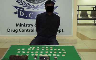 في ضربة جديدة لمروجي المخدرات تمكن رجال الإدارة العامة لمكافحة المخدرات (إدارة المعلومات) من إلقاء القبض على وافد هندي الجنسية وبحوزته كميه من مادة الهروين أسفل مسكنه، وقد قاوم رجال المكافحة محاولا الهرب إلا انه تمت السيطرة عليه، وبالصعود إلي منزله وتفتيشه تم العثور على 1500 حبة مؤثرات عقلية و50 غرام هيروين.