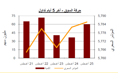 وعلى صعيد حركة التداول، فقد أنهى سوق الكويت للأوراق المالية تداولات الأسبوع الماضي مسجلاً تراجعاً لمؤشريه، وذلك في ظل تواصل عمليات البيع في السيطرة على مجريات التداول من جهة، وعزوف بعض المتداولين عن التعامل في السوق من جهة أخرى، وهو الأمر الذي أدى إلى تراجع مؤشرات السوق إلى مستويات متدنية جداً لم تشهدها منذ عدة سنوات. هذا ويعد قطاع البنوك من أكثر القطاعات التي ضغطت على السوق خلال تعاملات الأسبوع الماضي، حيث تركزت عمليات البيع بشكل واضح على أسهم هذا القطاع القيادي، مما أثر سلباً على أداء باقي القطاعات، والتي سجلت جميعها خسائر متفاوتة مع نهاية الأسبوع. هذا وقد سجل السوق مع نهاية الأسبوع الماضي تراجعاً لمؤشريه الرئيسيين، حيث أقفل المؤشر السعري عند مستوى 5,785.6 نقطة، بانخفاض نسبته 0.71%، في حين سجل المؤشر الوزني خسارة بنسبة بلغت 0.67% بعد أن أغلق عند مستوى 399.64 نقطة.