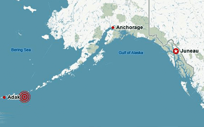 وكان مركز الهزة الأرضية في جزر ألوشيان، على بعد حوالي 192 كيلومتراً (120 ميلاً) و على الطرف الجنوبي الغربي للولاية والتي تحتوي على الكثير من البراكين النشطة.