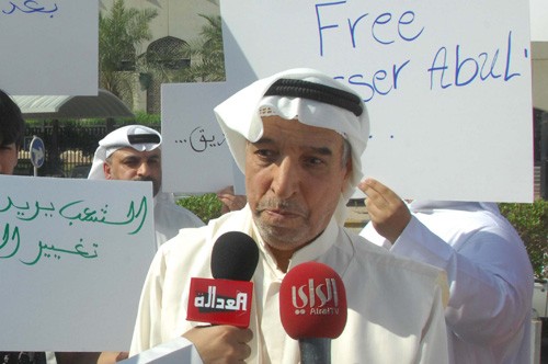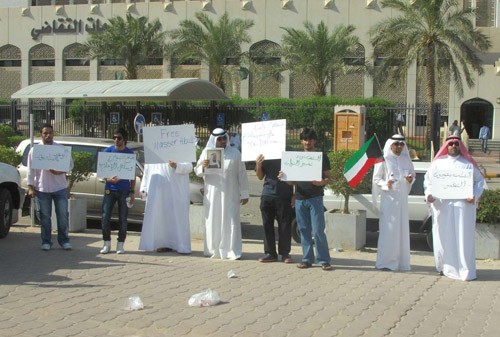 وسط حضور ضئيل.. نظمت أسرة المغرد ناصر أبل وعدد من أقربائه اعتصاماً أمام قصر العدل اليوم للمطالبة بالإفراج عنه، كما رفضوا تدخل النواب في القضية، في وقت أرجأت محكمة الجنايات الحكم فيها إلى جلسة الـ 27 من هذا الشهر.
