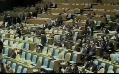 خلال إلقاء الرئيس الإيراني محمود أحمدي نجاد كلمته، التي وجه فيها هجمات لاذعة ضد الولايات المتحدة وضد الغرب،انسحب الوفد الأمريكي ووفود دول الاتحاد الأوروبي اليوم الخميس من قاعة الجمعية العامة للأمم المتحدة في نيويورك،