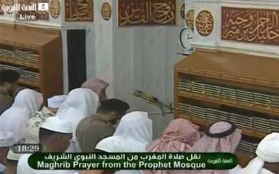 بالفيديو ..الشيخ الحذيفي يقطع صلاة المغرب في المسجد النبوي على “الهواء مباشرة”