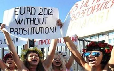 في أثناء قيام الفرنسي ميشال بلاتيني رئيس الاتحاد الاوروبي لكرة القدم بزيارة أوكرانيا للاطمئنان على استعدادات البلاد لاستضافة نهائيات كأس اوروبا 2012، قامت ناشطات أوكرانيات بتنظيم احتجاج وهن عاريات، للمطالبة بوقف السياحة الجنسية.