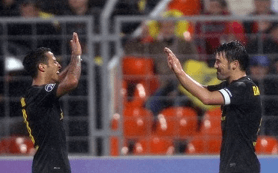 وسجل “الكسندر فالدزكو” في الدقيقة 19(خطأ في مرمى فريقه)، وبيدرو رودريغيز في الدقيقة 22، والأرجنتيني “ليونيل ميسي” ثنائية في الدقيقتيّن 38 و55، واختتم “ديفيد فيا” مهرجان الخماسية بهدف في الدقيقة الأخيرة من عمر المباراة.