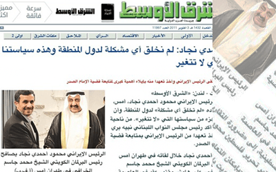 أوردت صحيفة الشرق الأوسط خبراً عن لقاء رئيس مجلس الأمة جاسم الخرافي بالرئيس الإيراني محمود أحمدي نجاد في طهران خلال حضوره مؤتمر دعم الانتفاضة الفلسطينية، لكنها سمته الشيخ “محمد جاسم الخرافي”.. مسبوقاً بـ “رئيس البرلمان الكويتي”.