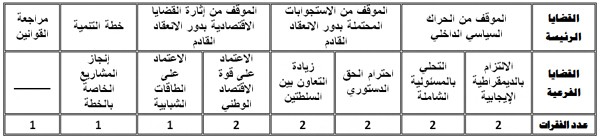 يوضح اهم القضايا الرئيسة والفرعية على المستوى الداخلي