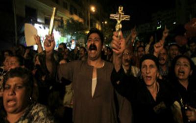 بعد أحداث طائفية أدت إلى هدم كنيسة في قرية المريناب في أسوان، إحدى المحافظات المصرية، استخدمت قوات الأمن القوة لفض اعتصام نظمه مئات الأقباط أمام مبنى الإذاعة والتلفزيون في منطقة ماسبيرو بالقاهرة للمطالبة بإقالة محافظة أسوان.