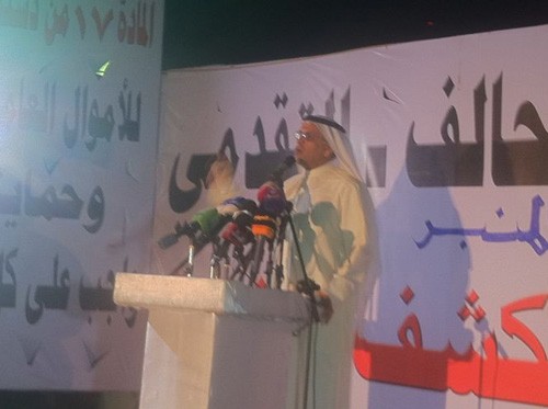 أماعضو المنبر الديمقراطي عزام العبيد، فقال:”نحن في المنبر الديمقراطي نقول في القضية المليونية إنها قضية دولة، ولن نسكت والفساد نخر في مؤسسات الدولة.. الفساد أتى من السلطة بشكل عام بكل شيء بالواسطات والمناقصات.. ونحن بالمنبرصفقتنا مع الشعب الكويتي.. وحل هذا الفساد في حل الحيتان الكبير بعد أن استأذن النائب مسلم البراك لأخذ جملتة بالحيتان الكبيرة وأقول إنها ستأكل الحيتان الصغيرة، مطالباً باحترام الدستور وبحكومة كويتية بوزراء أكفاء..