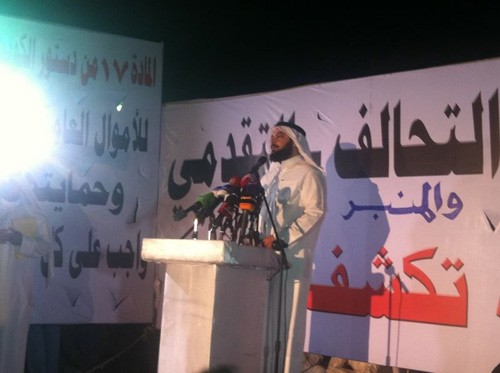 (تحديث2) من جانبه قال النائب الدكتور جمعان الحربش: “نجتمع اليوم في ساحة الإرادة، وهي بإذن الله ساحة تحرير الكويت من الفاسدين، مبدياً تعجبه ممن يقول اتقوا الله للشرفاء، والمفسدون لم يقل لهم اتقوا الله، متسائلاً: بأي دين أتيت به حتى تقول للشرفاء اتقوالله؟