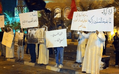 نظم عدد من أبناء الطائفة الشيعية في الكويت اعتصاماً مساء أمس أمام مسجد مقامس في منطقة الرميثية أسموه (نصرة الإمام الحسين) ضد خطبة الشيخ نواف السالم الذي انتقد فيها بشدة المساواة بين زيارة العتبات في مدينة كربلاء العراقية وبين الحج إلى بيت الله الحرام.