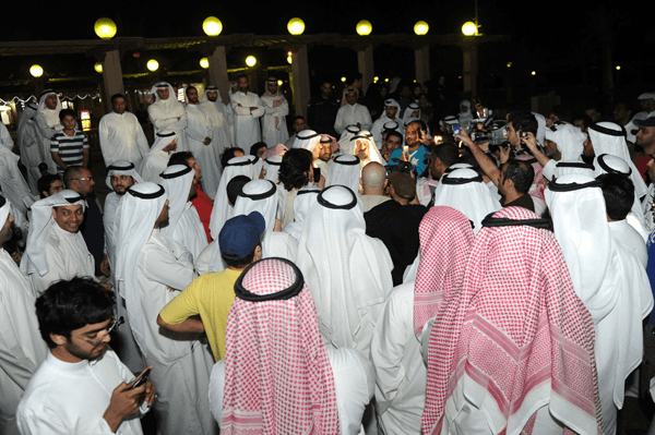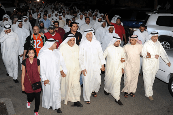 (تحديث4) خرجت مسيرة تضامنية من ساحة الإرادة مع المغردين حمد العليان وطارق المطيري باتجاه منزل رئيس الوزراء ناصر المحمد، لكن القوات الخاصة أوقفت المسيرة مما أجبر المتضامنين على التوقف عند شاطئ الشويخ.