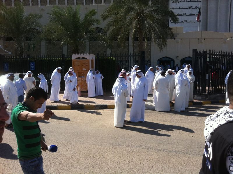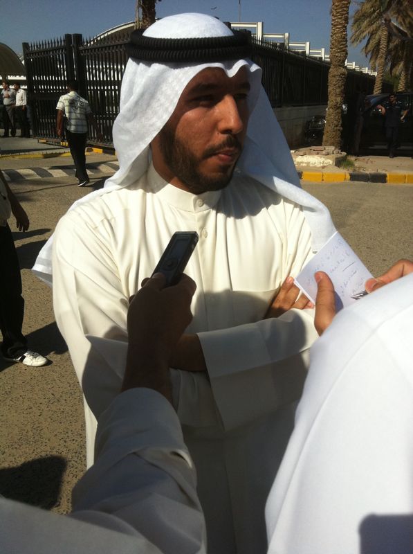 يحتشد الآن عدد من المغردين أمام قصر العدل يتقدمهم النائبان مسلم البراك ود.جمعان الحربش تضامناً مع المغردين حمد العليان وطارق المطيري اللذين تحتجزهمما النيابة العامة للتحقيق في شأن الاتهامات الموجهة إليهما من قبل وزارة الداخلية والمتعلقة بكتابة عبارات على موقع التواصل الاجتماعي “تويتر” اعتبرتها الأجهزة الأمنية مساساً بالذات الأميرية.