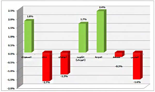 تصدرت بورصة قطر من حيث الأداء الإيجابي لشهر أكتوبر 2011 بمعدل 2.4% ، تلتها بورصتا السعودية والكويت بمعدل 1.8 و 1.7% على التوالي ، بينما تصدرت بورصتا دبي والبحرين قائمة البورصات الخليجية الخاسرة خلال الشهر المذكور بمعدل 1.7 و 1.6% على التوالي ، تلتها بورصة أبوظبي بمعدل 1.3% ، في حين كانت بورصة عُمان أقل الخاسرين بمعدل 0.3% .