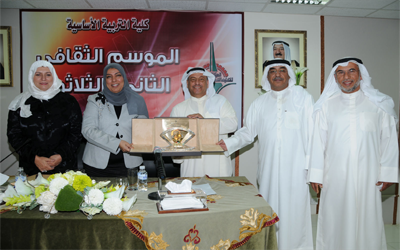 قامت كلية التربية الأساسية بالهيئة العامة للتعليم التطبيقي والتدريب بافتتاح الموسم الثقافي الثاني والثلاثين للكلية للعام الدراسي 2011/2012 ، وقد أشار عميد كلية التربية الأساسية أ.د. عبدالله المهنا بأن ندوات المواسم الثقافية غالباً ما تتركز حول المجتمع الكويتي ومتطلباته وطموحاته، سوف يناقش الموسم الثقافي الحالي “الثاني والثلاثون” موضوعات مختلفة منها البيئية، والثقافية والاجتماعية، مؤكدا بأن عمادة الكلية تضع كل الإمكانيات المادية والبشرية المتاحة للخروج بموسمها الثقافي الحالي لتحقيق أقصى استفادة ممكنة منه والخروج به في أفضل صورة، وقد استهلت الموسم الثقافي فعالياته بمحاضرة حول “رؤية وزارة التربية في دعم مشروعات الجودة الشاملة في التعليم والتعلم الالكتروني” لوكيل وزارة التربية المساعد للتعليم العام منى اللوغاني.