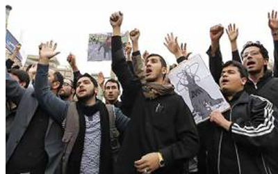 دخل عشرات المتظاهرين اليوم السفارة البريطانية في طهران حيث نزعوا العلم البريطاني ورفعوا العلم الإيراني مكانه.