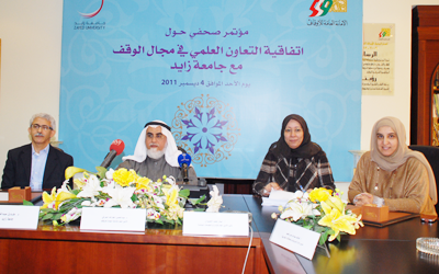 عقدت الأمانة العامة للأوقاف مؤتمراً صحفيا اليوم أعلنت من خلاله عن إطلاق أول برنامج ماجستير ودكتوراة في العالم في تخصص الوقف الإسلامي بجامعة زايد، وشرحت من خلالها أبرز بنود اتفاقية التعاون مع جامعة زايد في مجال الوقف.