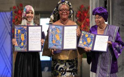 وكانت توكل كرمان ورئيسة ليبيريا إيلين جونسون ـ سيرليف ومواطنتها ليما غبووي قد فزن بالجائزة “لدفاعهن عن حقوق المرأة في مناطق يسيطر عليها القمع ولمساعدتهن النساء في بناء السلام”.