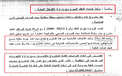 قنبلة من العيار الثقيل قد تطال شظاياها أكثر من مسؤول، فجرها موقع كويت ويكيليكس؛ إذ نشر اليوم وثيقة تثبت تجاوزات بعشرات الملايين في مشروع محطة الصليبية لمعالجة مياه الصرف الصحي، كما تثبت الوثيقة فشل المشروع في تحقيق الغاية المرجوة منه، واعتماد عقد ركيك مع المقاول، والتغاضي عن تجاوزات المقاول، وهدر المال العام.