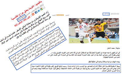 فريق الرصد في جريدة سبر الالكترونية رصد اقتباساً واضحاً وبالحرف ودون تعديل من جانب المحرر الرياضي في جريدة الوطن الالكترونية، حيث حاول أن يدخل فقرة كاملة تتحدث عن (مدرب القادسية رادان) ضمن تقريره عن مباراة الكويت والقادسية في بطولة كأس الأمير، وهو يظن أن حدثاً مثل سيمر مرور الكرام، جاهلاً أو متجاهلاً أن زمن الاتصال أزال الحواجز وأصبح العالم كله مكشوفاً على نفسه.