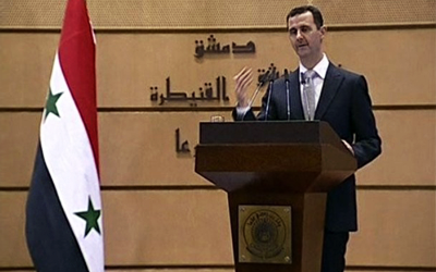أكد الرئيس السوري بشار الأسد في خطابه الرابع منذ اندلاع الاحتجاجات المناهضة لحكمه في مارس الماضي أن بلاده لن “تغلق الباب أمام أي مسعى عربي طالما يحترم سيادة سوريا” إلا أن “الجامعة العربية لن تكون جامعة ولن تكون عربية وهي مرآة لحالتنا العربية المزرية”