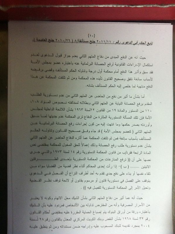 ينتظر أن تصدر محكمة الجنح المستأنفة في جلستها اليوم الأربعاء حكماً في القضية المرفوعة من قبل بنك برقان ضد النائب السابق د.فيصل المسلم وموظف في البنك، وبناء على هذا الحكم سيتحدد موضوع شطب طلب المسلم في الترشح للانتخابات.