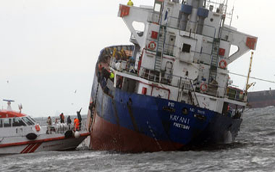 وتسربت المياه إلى مؤخرة سفينة الشحن (كايان 1) التى يبلغ وزنها 5644 طنا وترفع علم سيراليون، وتم سحبها إلى موقع آمن بعد التصادم مع السفينة (ادريابلو) فى الجزء الجنوبى من المضيق.