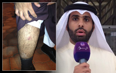تعرض الزميل فهد الزامل مراسل قناة اليوم إلى الإصابة خلال تغطيته لأحداث التجمهر أمام قناة الوطن فجر اليوم، حيث كان له نصيب “من  “الرصاص المطاطي” الذي استخدمه رجال الأمن لتفريق الشباب المتجمهر.