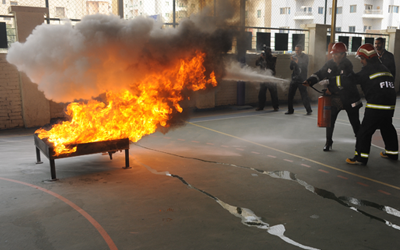 وقال نبيل الهولي رئيس فريق الإسناد الفني تطرق فريق التدريب التابع للشركة إلى مخاطر الحريق وهو خطر يمكن وقوعه في أي مكان وأي وقت بسبب الإهمال بشروط الأمن والسلامة وعدم الالتزام بها أو بعدم توفر اشتراطات مكافحة الحريق أو بسبب عدم تجهيز المدرسة بوسائل لمكافحة الحريق عند نشوبه وأن معدات السلامة هي من المتطلبات التي يجب توفيرها في المدرسة حيث في حالة وقع حادث وللقيام بعمل الاسعافات الأولية أو القيام بإطفاء حريق محدود ومنعا لتطوره إلى حريق شامل لهذا يجب توفرها وبشكل كامل كما يجب توفير مطفأة حريق وبعدد يتناسب مع حجم المدرسة والأماكن وأن تكون بمواقع ظاهره ومحدده ومعلومة للجميع وأيضا تتناسب مع نوع الحريق المحتمل وقوعه وأن توزع بشكل عملي وعلى عدد من الأماكن وخاصه المحتمل وقوع الحريق فيها .
