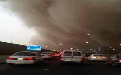 ضربت الرياض عاصفة رملية شديدة القوة، تحول معها النهار إلى ظلام دامس، ما أدى إلى صعوبة الرؤية في الشوارع والطرقات.