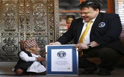 “نيبال” التي تفخر بقمة ايفرست أعلى قمم الجبال في العالم أضافت لقبا جديدا يخص الاطوال يوم الاحد هو أقصر رجل في العالم، حيث تولى فريق من العاملين في موسوعة جينيس للارقام القياسية العالمية قياس طول تشاندرا بهادور دانجي فوجدوه 54.60 سنتيمتر (21.5 بوصة) ثم أعلنوا أن الرجل البالغ من العمر 72 عاما أقصر من حامل اللقب السابق الفلبيني جونري بالاوينج الذي بلغ طوله 23.5 بوصة عندما كان عمره 18 عاما العام الماضي.