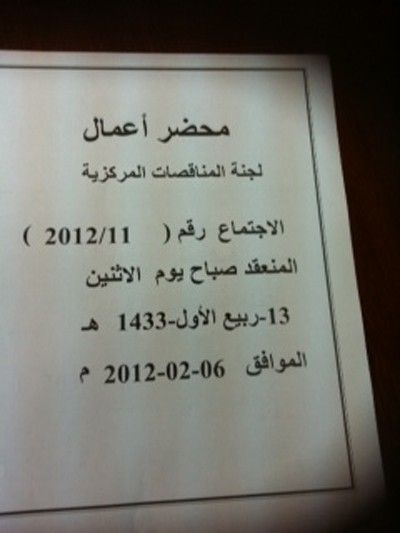 أن هذه العبارة المسيئة والمعيبة تكتب للمرة الأولى بمثل هذه الطريقه” شاكراً الأخوه في لجنة المناقصات
