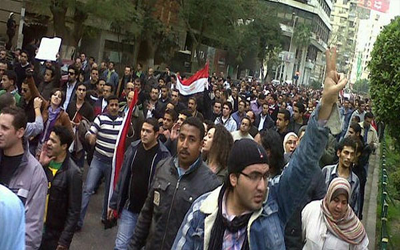 بينما صعد عدد من الأشخاص المجهولين سلم كوبرى 6 أكتوبر، وبدأوا برشق المتظاهرين بالحجارة والزجاجات الفارغة، فيما رد عليهم المتظاهرون بإطلاق الشماريخ دون أن تحدث أى إصابات.