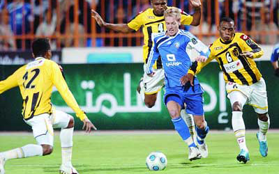 اقتنص الهلال تعادلاً ثميناً من غريمه التقليدي الاتحاد بعد التعادل بينهما بهدفين مقابل هدفين في منافسات ذهاب الدور الربع النهائي لكأس خادم الحرمين الشريفين السعودي للابطال .