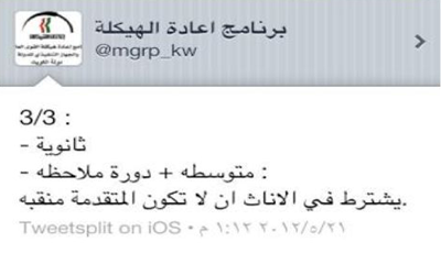 وبعد كل هذه الضجة التي أحدثها جاء تأكيد برنامج غعادة الهيكلة كالتالي: “تكررت الأسئلة والاتهامات والتجريح في موضوع أن لا تكون منقبة وهو شرط الشركة وليس شرط اعادة الهيكلة وذلك لأن الوظيفة لا تناسب السيدة المنقبة هو ليس تقليلاً من اخواتنا المنقبات كما يفهم البعض و شكراً”.