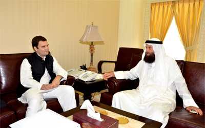 استقبل نائب رئيس مجلس الأمة خالد السلطان في مكتبة ظهر اليوم (الثلاثاء) أمين عام حزب المؤتمر الحزب الرئيسي في الائتلاف الحاكم لشؤون الشباب في جمهورية الهند راهول غاندي والوفد المرافق له وذلك بمناسبة زيارته للبلاد.