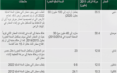 من المتوقع أن يشهد قطاع المطارات المزيد من الاستثمارات بقيمة 30 مليار دولار أمريكي على النحو التالي :