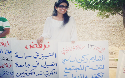وقالت عضوة المجموعة د.رنا العبدالرزاق: قابلنا اليوم وزير التربية واطلعناه على مطالبنا المتمثلة بتوفير حق التعليم للطلبة البدون وخشيتنا من ضياع فرصهم في اكمال حياتهم العلمية الأمر الذي سيتسبب بخسارة الكويت لمثل هذه الطاقات والعقول”.