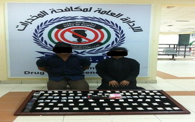 ضبطت إدارة العمليات التابعة للإدارة العامة لمكافحة المخدرات متهمين من الجنسية الآسيوية بحوزتهما كمية من المواد المخدرة.
