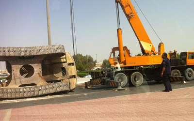 سقطت جرافة على طريق الدائري السادس مقابل منطقة جنوب السرة بينما كانت محمولة على رافعة “ونش”.