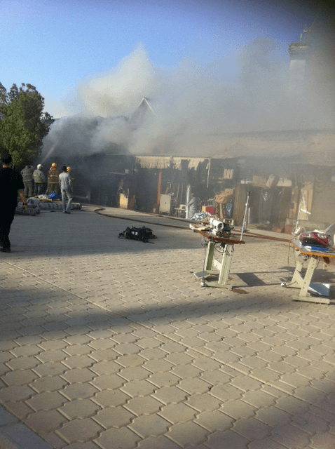 فقد ورد بلاغ من غرفة العمليات في الساعة 4:04 مساء بوقوع حريق بعدد من المحلات في سوق السلاح فهرع كل من مركز اطفاء المدينة و مركز اطفاء الهلالي ولدى وصول الآليات لموقع الحادث تبين ان الحريق شب في محلين لتنجيد الأقمشة بمساحة 54 مترا مربعا فتم تشكيل فرق مكافحة استطاعت السيطرة على الحريق ومحاصرة ألسنة اللهب للحيلولة دون امتدادها للمحلات المجاورة الاخرى ، وأصيب اثناء الحادث أحد رجال الأطفاء الملازم طلال السعيد وتلقى العلاج بموقع الحادث.
