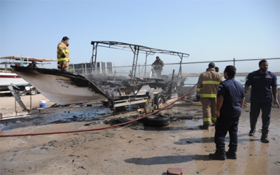 التهمت النيران طراد نزهة خلال وجوده في مرسى البدع، وفتحت أجهزة الإطفاء تحقيقا في أسباب اندلاع النيران، وبذل رجال مركز إطفاء السالمية البحري جهودا كبيرة للسيطرة على الحريق ومنع انتشاره إلى طراريد أخرى.