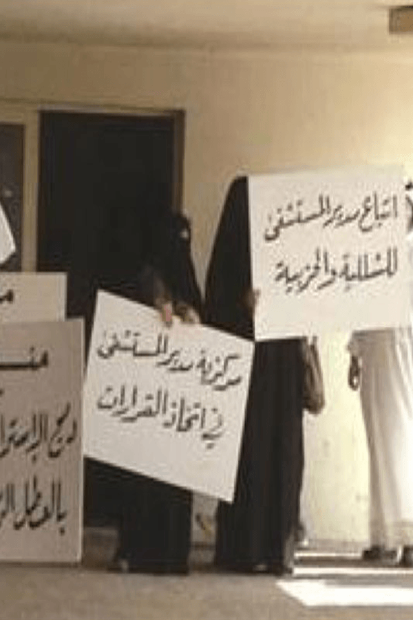 وأضاف المطيري: “وللعلم نحن اعتصمنا فقط بسبب ضياع حقوقنا التي اقرتها وزارة الصحة والتي للأسف اوقفتها منطقة الاحمدي الصحية ممثلة بمديرها ومدير المستشفي، ونفيدكم بأن عدد الموظفين الموقعين علي المطالبات تجاوز 150 موظفا وتتمثل في حقوقهم المسلوبة ومطالبات أخرى لم تنفذ لهم”.