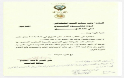 آخر الأخبار جرائم وقضايا “الجمارك” تضبط 29 ألف علبة مشروبات كحولية قادمة من دولة آسيوية في ميناء الشويخ 9 يونيو، 2024 محليات ممثلة عن دولة الكويت الطبيبة الكويتية أسماء الكندري تشارك في المؤتمر العالمي للمناظير في إيطاليا 8 يونيو، 2024 محليات “الصحة”: اكتمال وصول فريق الخدمات الطبية ببعثة الحج الكويتية لمكة المكرمة 8 يونيو، 2024 محليات “الصحة” تحدد 8 مراكز للصحة المدرسية لاستقبال الطلبة المبتعثين 8 يونيو، 2024 عربي وعالمي “الصحة العالمية”: تسجيل أول وفاة لشخص مصاب بـ«أنفلونزا الطيور» 7 يونيو، 2024 محليات محافظ العاصمة يوافق على ترخيص كرامة وطن 4 المحرر المحلي5 ديسمبر، 2012أضف تعليق1 دقائق وافق محافظ العاصمة الشيخ علي الجابر على ترخيص مسيرة كرامة وطن 4 شريطة الالتزام بالقانون والنهج السلمي. وفيما يلي صورة كتاب المحافظ ردا على طلب النائب السابق وليد الطبطبائي وفواز العنزي وشافي الدوسري: من الممكن أن يعجبك محليات ممثلة عن دولة الكويت الطبيبة الكويتية أسماء الكندري تشارك في المؤتمر العالمي للمناظير في إيطاليا محليات “الصحة”: اكتمال وصول فريق الخدمات الطبية ببعثة الحج الكويتية لمكة المكرمة محليات “الصحة” تحدد 8 مراكز للصحة المدرسية لاستقبال الطلبة المبتعثين محليات العجمي : السماح بالتخييم في “جال الزور” مدمر للبيئة محليات وزير الصحة : تشكيل لجنة فنية لإعداد دراسة إنشاء مركز متخصص في “التصلب العصبي المتعدد” محليات مجلس الوزراء يوافق على محضري “لجنة تحقيق الجنسية” أضف تعليق أضغط هنا لإضافة تعليق إلغاء الردالتعليقالاسم البريد الإلكتروني الموقع الإلكتروني Δ هذا الموقع يستخدم خدمة أكيسميت للتقليل من البريد المزعجة. اعرف المزيد عن كيفية التعامل مع بيانات التعليقات الخاصة بك processed.