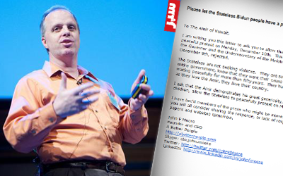 وجه الناشط الأمريكي جون مور رسالة جديدة إلى سمو أمير البلاد الشيخ صباح الأحمد الجابر الصباح ناشده من خلالها السماح لـ “البدون” إقامة اعتصامهم السلمي اليوم الاثنين.