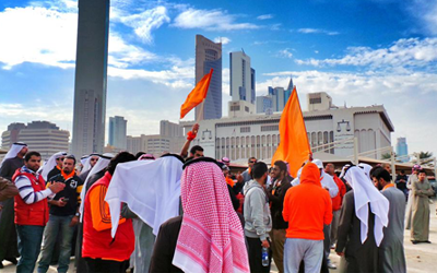 وطالب الحساب من الجميع إحضار الرايات البرتقالية واللافتات المنددة بالمرسوم والرافضة لاستمرار مجلس الصوت الواحد، مشيرا الى استمرار الفاعلية حتى افتتاح دور الانعقاد.